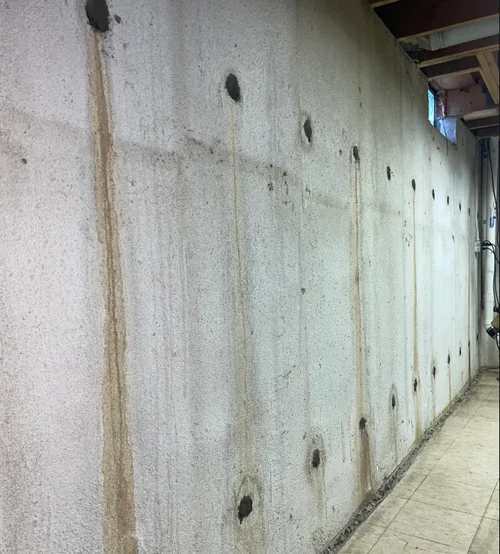 Tie rod holes are small spots in the basement walls where water can sneak inside. We seal these holes to keep your basement dry, protected, and safe in any weather.